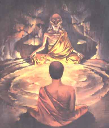 FØRST EN KORT INNLEDNING: (last ned det hele, koble fra telenettet og les det i ro og mak for dette er en lang og omfattende - men meget spennende, og sann historie. Filen/artikkelen ligger inne i maskinen når den er nedlastet - og kan derved åpnes igjen uten å skulle kople seg til internett på nytt. Vel - Rampa sier selv at alt han har skrevet er den absolutte sannhet - og at fremtidens forskning og nye avsløringer vil bevise dette i de kommende tiår. Og den enkeltes egen indre logikk vil også rettlede den som gjenkjenner ytre fornuft og logikk som man leser. Ettersom Rampa først skrev dette ned da han kom til vesten - er det klart at han her må ha modernisert og tilpasset språket etter det - i forhold til det som den gamle eremitt fortalte årtier tidligere. R.Ø.anm.) Eremitten - ja dette var altså tittelen på den danske oversettelse av Lobsang Rampas bok "The Hermit". Boken ble utgitt i DK tidlig på 70-tallet (orginalen utkom 15 år før i England/Canada/USA), men inneholdt stoff som naturlig nok - for ca.40 år siden - ble sett på som ren fantasi - og slik ser de det vel fortsatt, de som ikke kjenner den logiske tråden i kosmos’ utvikling. Rampa kom som ung munk til hulen til en gammel blind eremitt som grunnet sin ekstremt utviklede hukommelse ble utvalgt av en gruppe "utenomjordiske overvåkere" til å viderebringe spesielle kosmiske informasjoner. Denne gamle og blinde mann levde på det som handelskaravanane gav ham i bytte mot hans velsignelser. De "kosmiske gartnere" som de kalte seg - fortalte ham at han langt senere ville bli oppsøkt av en ung munk, som skulle bringe denne spesielle informasjonen ut til verden - altså Lobsang Rampa. (Det berettes bl.a. i Semjase-materialet at de høyere utviklede sivilisasjoner har teknologi til å fjernscanne/måle bevissthets-kapasiteten til mennesker). De sa bl.a. at de overvåket Jorden slik at atomvåpen ikke kom til utfoldelse. Denne isolerte eneboer hadde som ung mann, bosatt i Lhasa i Tibet, blitt torturert og for livet blindet av kineserne som prøvde å få ham til å røpe noen statshemmeligheter som han dog ikke kjente til. Det nøyaktige tidspunkt for hendelsen nevnes ikke, men ut fra boken kan det se ut som det skjedde for ca.100 år siden. Det gir en meget livaktig beskrivelse av det ekstremt nøkterne liv som eneboere i østen levde og enda noen fortsatt lever. Visse ord er "oversatt" til norsk i parantes for hjelp til de som ikke er så vant med dansk. Den blinde mannen (eremitten) ble tilsynelatende brakt til en underjordisk base som "de" den gang hadde et sted i Tibets enorme fjellverden - det ser ut som dette var i tilknytning til en utbrent gammel vulkan… Denne ET-base opererte de "utenomjordiske overvåkere" i det skjulte . Her ble han bl.a. satt teknisk istand til å kunne se - ved at de satte elektroder inn i hans hjerne og via et slags kamera kunne han da fysisk se hva som ble vist ham der. Senere ble hans bevissthet frigjort fra kroppen og gjennom sitt finstofflige ("åndelige") legeme ble han brakt til nye opplevelser. Lobsang Rampa forteller her om et merkelig møte i sine yngre dager med en blindet gammel eremit: Første kapitel Udenfor skinnede solen. Dens stærke stråler ramte træerne, kastede sorte skygger bag de fremspringende klippestykker og sendte myriader af glitrende prikker op fra den dybblå Sø. Her i den dybe niche i den gamle eremits hule blev lyset dog filtreret gennem det nedhængende bregneløv; det var grønligt og undrende for trætte øjne, der var anstrengt af at have været udsat for det skærende skarpe sollys. Den unge mand (Lobsang som ung) bukkede ærbødigt for den magre eremit, der sad rank på en sten; som tiden havde slebet til. - Jeg er kommet for at blive belært af dig, Ærværdige, sagde han med lav stemme. - Sæt dig, befalede den ældre. Den unge munk i den murstensrøde kutte (kappe) bukkede igen og satte sig med korslagte ben på den hårdtstampede jord et lille stykke fra den gamle munk. Den gamle eremit sagde ikke mere, han skuede tilsyneladen de ind i en uendelig fortid med sine tomme øjenhuler. Mange, mange år tidligere var han blevet overfaldet af kinesiske embedsmænd i Lhasa, som grusomt havde blindet ham, fordi han ikke gav dem oplysninger om nogle statshemmeligheder, han ikke kendte noget til. Torteret, lemlæstet og blindet var han bitter og desillusioneret vandret bort fra byen. Han gikk om natten og næsten vanvittig af smerte og chok, som han var, undgik han kontakt med mennesker. Han tænkte, tænkte hele tiden. Han klatrede opad, bare opad, levede af det sparsomme græs og de urter, han kunne finde; bjergbækkenes rislen førte ham til vand, når han var tørstig, og han kunne på den måde lige netop holde sig i live. Hans værste sår heledes langsomt, og hans tomme øjenhuler dryppede ikke mere, men han klatrede stadig opad væk fra de mennesker, der pinte så vanvittigt og uden grund. Luften blev tynd. Der var ikke længere nogen grene, han kunne skrælle og spise barken fra. Han kunne ikke længere bare strække hånden ud og plukke græs. Nu måtte han kravle på hænder og knæ, slingrende og famlende, og håbe på, at han kunne få nok til at holde sultens smerter væk. Luften blev koldere, vinden bed mere, men han kæmpede sig stadig opad, som om der var noget inde i ham, der tvang ham fremad. Uger før, dengang han havde begyndt sin vandring, havde han fundet en tyk gren, som han nu brugte som stok til at finde vej med. Nu slog hans søgende stav mod en forhindring, og hans famlende fingre kunne ikke finde nogen åbning. Den unge munk så intenst på den gamle mand. Ikke den mindste bevægelse. Var han mon rask(dansk for frisk), tænkte den unge mand og trøstede sig så med tanken om, at de Ærværdige Gamle levede i fortiden og aldrig forhastede sig for nogens skyld Han så sig nysgerrigt omkring i den næsten tomme hule; der var virkelig næsten ingenting i den. Ved den ene væg lå en gulnet halmdynge, hans seng og ved de